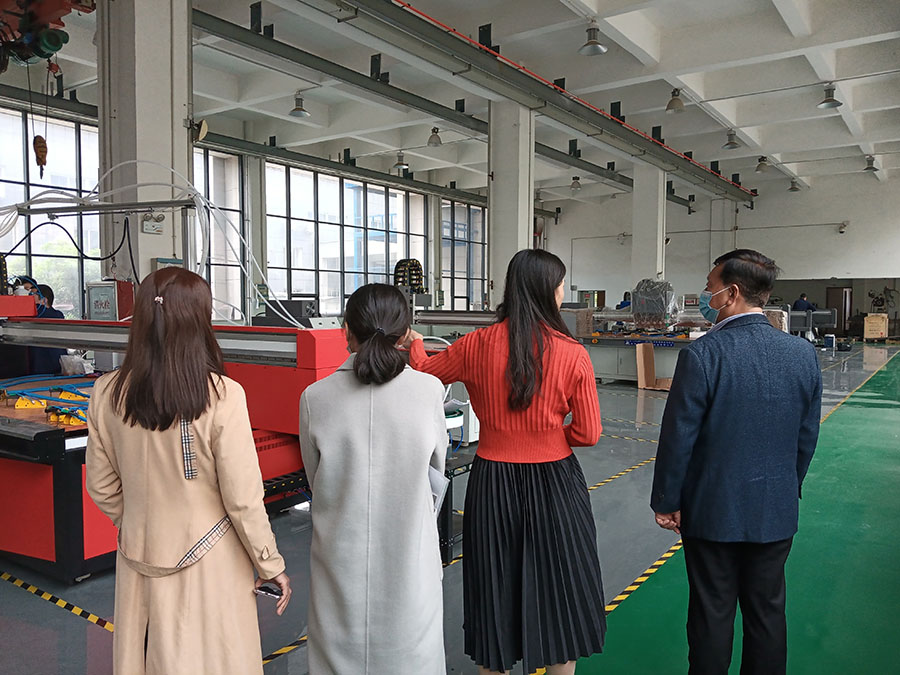 日出江花紅勝火,春來江水綠如藍(lán)。2021年4月13日,洛陽市高新區(qū)人大領(lǐng)導(dǎo)一行人來我廠考察指導(dǎo)工作,重點(diǎn)參觀了我司的鈑金自動(dòng)化設(shè)備:涂膠設(shè)備、工業(yè)平板噴墨打印設(shè)備、焊接自動(dòng)化設(shè)備、工業(yè)機(jī)器人等,對(duì)我司的產(chǎn)品給予了肯定。詳細(xì)了解了數(shù)控自動(dòng)化設(shè)備的的應(yīng)用領(lǐng)域和新產(chǎn)品的研發(fā)工作,給予了充分地肯定與認(rèn)可。